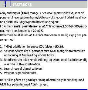 Selvom man i dag ikke anbefaler erstatningsbehandling, bør man fortsat screene for A1AT-mangel, idet patienter med denne mangel har en markant højere risiko for at få emfysem, hvis de ryger.
