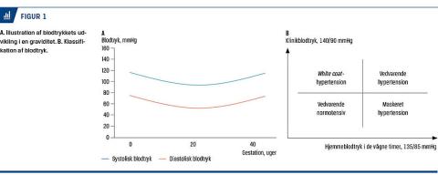 Hypertension i graviditeten øger risikoen for bl.a. præeklampsi, lav fødselsvægt og præterm forløsning [1] og er fortsat en af de førende globale årsager til maternel mortalitet [2]. Blodtryksmåling er derfor en essentiel del af svangreomsorgen hos både jordemoderen, obstetrikeren og den alment praktiserende læge. Blodtryk målt i klinikken korresponderer dog ikke altid med det blodtryk, som patienten har i det daglige liv. Dette gælder både for patienter med white coat-hypertension, dvs. højere blodtryk målt i klinikken end derhjemme, og for patienter med maskeret hypertension. Maskeret hypertension er et relativt ukendt fænomen, hvor en patient måler høje blodtryk hjemme, men har normale blodtryk i klinikken og dermed oftest forbliver udiagnosticeret.