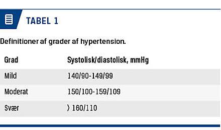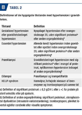 Hypertension i graviditet kan komme til udtryk på mange måder: kendt essentiel hypertension, gestationel hypertension og som del af præeklampsi (Tabel 2).