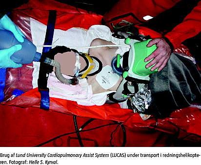 Overlevelse ved hjertestop uden for hospital er ringe, navnlig hvis det skyldes et traume. Samtidig hypotermi øger dog chancerne for overlevelse. Der er tidligere beskrevet tilfælde, i hvilke hypoterme personer er blevet genoplivet efter udspring fra bro i stor højde, men det er første gang, at Flyvevåbenet har brugt LUCAS hertil [1]. På markedet eksisterer der flere systemer til mekanisk hjertemassage [2]. Den oplagte fordel ved maskinel hjertemassage er at frigøre en person til andre opgaver. Men hvad vigtigere er, udfører LUCAS effektiv hjertemassage med konstant frekvens og dybde, selv under vanskelige forhold - i dette tilfælde under flyvning og hos en afkølet patient. Den benyttede model drives af trykluft og udgør dermed en logistisk udfordring i det præhospitale miljø. En nyere batteridrevet model er formentligt bedre egnet. Ved kompressionerne syntes LUCAS også at medvirke til ventilationen, når der samtidigt er sikret frie luftveje og tilførsel af ilt via endotrakelatube [3, 4]. Der er dog også beskrevet skader efter brug af LUCAS [5]. I den netop gennemgåede case er det ukendt, om thoraxskaderne var en følge af faldtraume og efterfølgende drukning eller sekundære til brug af mekanisk hjertemassage. Formentlig skyldtes skaderne en kombination af de to. Anvendelse af mekanisk hjertemassage i præhospitalt regi har mange umiddelbare fordele, men der foreligger endnu ikke retningslinjer fra Dansk Råd for Genoplivning vedrørende brug.
