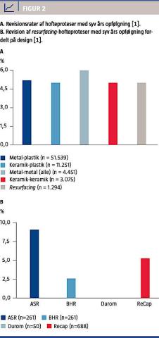 I en nylig opgørelse fra National Joint Registry of England and Wales af 402.051 hofteproteser påviste man, at 6,2% af large-head-proteserne skulle revideres inden for de første fem år, mens 1,7% af plastik-metal- og 2,3% af keramik-keramik-hofteproteserne skulle revideres [17]. Risikofaktorer for revision var store lårbenshoveddiametre og kvindeligt køn. Disse data understøtter konklusioner fra International Consortium of Orthopaedic Registries (ICOR) [18]. Den totale revisionsrate for alle MoM-hoftealloplastikker i Danmark er 6,0% med syv års opfølgning (Figur 2) [1].