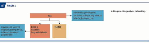 Brugerstyret behandling omfatter flere trin, hvor patienten får indflydelse: valg af tilbud, tilrettelæggelse af tilbud og den individuelle tilpasning af forløbet (Figur 1).