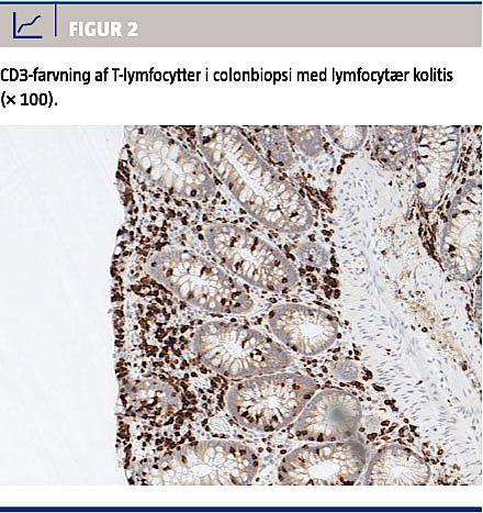 Mikroskopisk kolitis (MC) er en hyppig årsag til kronisk diarré [1, 2]. MC er karakteriseret ved kronisk vandig diarré, makroskopisk normal colonslimhinde og karakteristiske histologiske forandringer. MC omfatter traditionelt to histologiske former: kollagen kolitis (CC) og lymfocytær kolitis (LC), men inkomplette former er beskrevet [1, 3, 4]. Biopsier fra colonslimhinden er afgørende for diagnosen, hvorfor det er betydningsfuldt, at såvel kliniker som patolog er bekendt med diagnosen.
