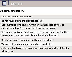 Anvendelse af mind-to-paper som metode til udfærdigelse af videnskabelige artikler er effektiv og producerer artikler af høj kvalitet, selv når metoden anvendes for første gang af helt unge forskere. Anvendelse af diktering producerer videnskabelige artikler med et passende højt sprogniveau, og diktering tillader hurtig overførelse af ideer og tanker til skrevet tekst.