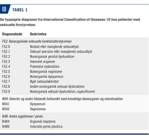 Seksuelle funktionsforstyrrelser er hyppige og påvirker en bred patientgruppe i det danske sundhedsvæsen, og derfor er det vigtigt at have fokus på seksuelle forstyrrelser i den kliniske hverdag.