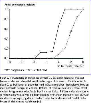 Den måske største forventelige gavn af RQ-PCR-analyser ved leukæmi er imidlertid den tidlige erkendelse af recidiv, som desværre ses hos over halvdelen af de patienter med akut leukæmi, som opnår CR. Afhængig af kinetikken for et sådant tilbagefald vil klinikeren så at sige »have et forspring« i diagnosticeringen af recidivet og derved et større terapeutisk vindue [2].