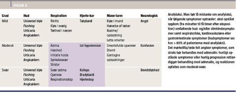 Der er to væsentlige pointer i denne kasuistik: Primærbehandling af en moderat til svær anafylaktisk reaktion er adrenalin og ikke antihistamin og kortikosteroid, jf. forslag til nationale retningslinjer for anafylaksi (Figur 2) [5].