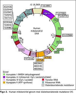 Såvel mutationer i det nukleare DNA (nDNA) som det mitokondrielle DNA (mtDNA) kan føre til syndromer, hvor diabetes indgår som komorbiditet. Det sidste benævnes mitokondriel diabetes [2]. De enkelte syndromer er sjældne, og deres prævalens er ukendt. Som gruppe er de dog interessante, idet de som modeller kan bidrage med ny indsigt i den diabetiske patofysiologi.