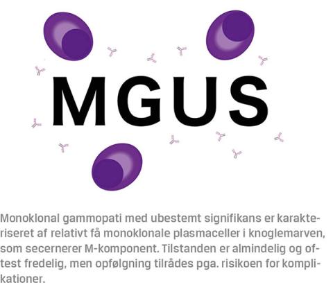 Når patienter med uspecifikke symptomer på alvorlig sygdom, der kunne være kræft, undersøges i det diagnostiske pakkeforløb, resulterer det ikke sjældent i fund af en M-komponent [1]. Det kan være tegn på en hæmatologisk kræftsygdom som f.eks. myelomatose eller malignt lymfom. I de fleste tilfælde er der dog ikke tale om kræft, men den præmaligne tilstand monoklonal gammopati med ubestemt signifikans (MGUS).