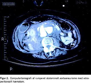 Rumperet abdominalt aortaaneurisme (rAAA) (Figur 1 ) er en akut kirurgisk tilstand med høj mortalitet [1]. Mortaliteten ved abdominale aortaaneurismer (AAA) afhænger af, hvornår der interveneres kirurgisk. 30-dages-mortaliteten varierer fra 5-6% ved elektiv operation for AAA [1, 2, 3] til 40-50% efter akut operation for rAAA [2-8].