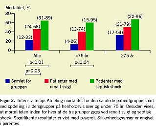 Mortaliteten for patienter, der udviklede renalt svigt, var 45%, hvilket er signifikant højere end den samlede ITA-mortalitet på 22% (p = 0,03). Tilsvarende gælder for patienter med septisk shock (p < 0,01), hvor mortaliteten var 64%.