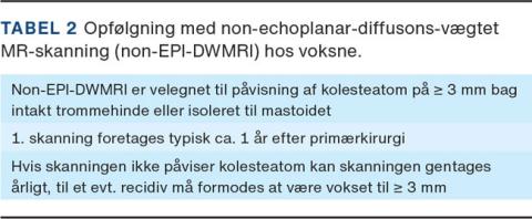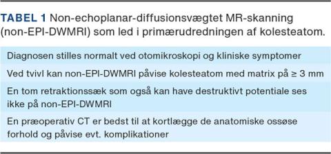 Non-EPI DWMRI kan anvendes til både den primære diagnosticering af kolesteatom og i den postoperative opfølgning.