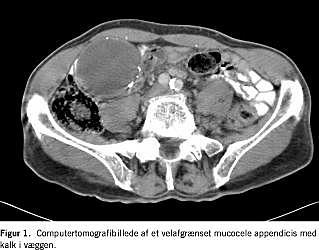 Mucocele appendicis (MA) beskrives som en tilstand med et dilateret mucinfyldt appendixlumen. Mucoceledannelse ses ved en række vidt forskellige processer, såsom inflammatorisk striktur ofte forårsaget af en fækolit, endvidere appendixkarcinom, appendixendometriose, appendixkarcinoid, appendixpolyp, appendixvolvulus og caecumkarcinom [1, 2]. Ved appendektomi foretaget på mistanke om appendicitis acuta findes MA med en hyppighed på få promille, hyppigst hos midaldrende personer, oftere kvinder end mænd [3].