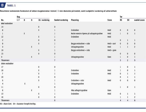 Det sekundære outcome tørhed blev vurderet af to blindede investigatorer uden kendskab til hinandens vurdering. Resultaterne for tørhed er vist i Tabel 1. Der var stor variation i graden af tørhed vurderet af de to investigatorer, hvorfor der ikke udførtes videre analyser. Tid til første mugdannelse var sammenlignelig for de to grupper (Tabel 1 og Figur 1). Begge grupper havde første gang et positivt primært outcome på dag 8.