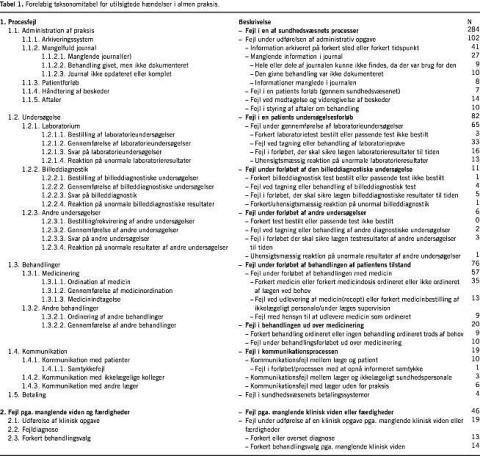 Overordnede hændelsestyper i almen praksis