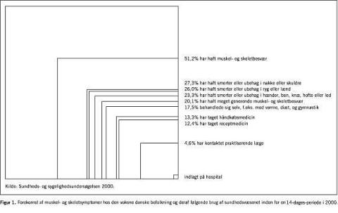 Arbejdstilsynet angiver, at muskel- og skeletlidelser i 2000 udgjorde 50% af de anmeldte arbejdsbetingede lidelser, og ifølge Landspatientregistret udgjorde de ICD 10-definerede muskel- og skeletsygdomme i 2000 ca. 5% af alle sengedage på hospital. Endvidere havde godt 60% af forløbene på et revalideringscenter baggrund i muskel- og skeletlidelser [3].