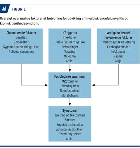 Patofysiologien bag ME/CFS er uafklaret, men de fleste patienter beskriver, at tilstanden opstod i efterforløbet af en »trigger«. Som oftest nævnes en infektion, men fysiske traumer, fysisk eller mentalt stress, vaccination eller miljøgifte anføres også som mulige udløsende faktorer [1]. I de seneste fem år har nye undersøgelsesmetoder og en stigende interesse for tilstanden ført til øget forskningsaktivitet. Om end mange af de nyeste fund endnu ikke er reproduceret, tegner der sig et billede af ME/CFS som karakteriseret ved signifikante og associerede mitokondrielle, neuroendokrine, immunologiske og metaboliske dysfunktioner, hvor symptombyrden er associeret til de fundne forandringer [1, 6-9]. Som gruppe er patienter med ME/CFS således kendetegnet ved at have en aktivering af immunsystemet, som kan være forenelig med kronisk low-grade-inflammation.