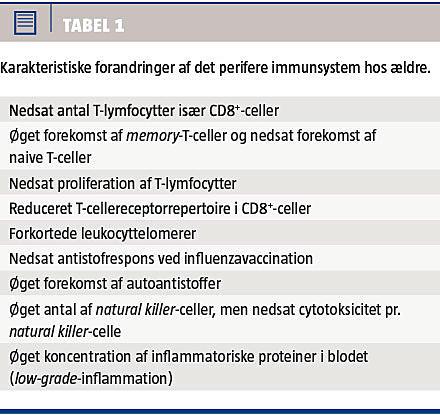 Med alderen forandres immunsystemets fænotype (immunosenescence). Dette sættes ofte i relation til en aldersassocieret stigning i incidensen af infektioner med bakterier som f.eks. Streptococcus pneumoniae og Escherichia coli samt mere komplicerede virusinfektioner hos ældre [1], hvor anatomiske og fysiologiske ændringer samt komorbiditet selvfølgelig også har stor indflydelse.