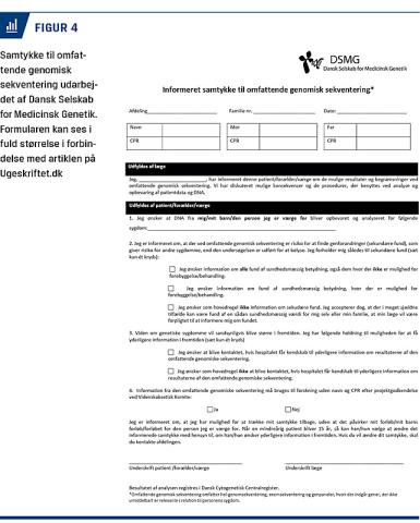 Patienterne udfylder en samtykkeerklæring udarbejdet af DSMG (Figur 4), hvor de tager stilling til, i hvilken grad de ønsker tilbagemelding om sekundære fund.