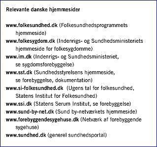 <li>Indenrigs- og Sundhedsministeriet. Status 2001 for folkesundhedsarbejdet. København, 2002.</li>
