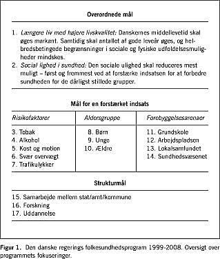 De overordnede mål for de danske folkesundhedsprogrammer 1999 og 2001 fremgår af Figur 1 og Figur 2 .
