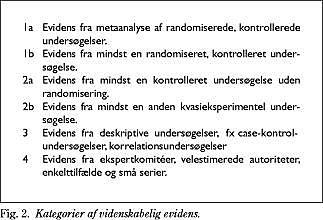 Vi søgte i databaserne Cochrane Library 2001 og MEDLINE fra 1966 til august 2001 efter publicerede artikler, der omhandlede naturlægemidler. Søgeord inkluderede »herbs«, »herbal drugs«, »herbal medicines«, »adverse events«, »St. John's wort«, »Hypericum«, »Ginkgo biloba«, »Gingko biloba«, »Valerian«, »Garlic« og »Ginseng«. Fra referencelisterne i de indhentede publikationer fandt vi yderligere publikationer, der omhandlede naturlægemidler. Ingen abstracts eller upublicerede undersøgelser blev inkluderet. Den videnskabelige evidens er kategoriseret iht. Fig. 2 .