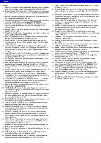 Der blev foretaget en systematisk litteraturgennemgang ved søgning på PubMed (MEDLINE) med søgekriterierne: vestibular neuritis, vestibular rehabilitation, vertigo, methylprednisolon og steroid. Oversigten suppleres med relevante referencer på de fundne artikler.