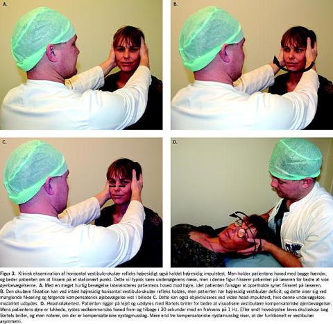 Ipsilateralt udfald af en horisontale buegangsfunktion, bedømt ved impulstest (Figur 3) og vestibulær asymmetrisk funktion bedømt ved head-shake-test (Figur 3) eller kalorisk øreskylning (varierende grader af hypo- eller nonreaktivitet).