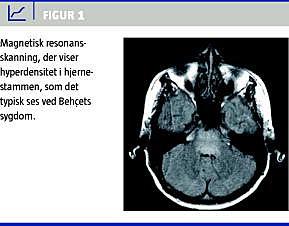 Behçets sygdom (BD) er en kronisk og attakvist optrædende inflammatorisk multiorgansygdom af ukendt ætiologi. Den kliniske triade med uveitis samt orale og genitale ulcerationer blev første gang beskrevet i 1937 af den tyrkiske læge Hulusi Behçet [1]. Diagnosen forudsætter orale ulcerationer mindst tre gange på et år samt mindst to af følgende fire hovedmanifestationer: genitale ulcerationer, øjensymptomer, hudmanifestationer (erythema nodosum, folliculitis, akneiforme læsioner) og positiv priktest [2]. Sygdommen kan i varierende grad involvere hjerte-kar-systemet, lungerne, mave-tarm-kanalen, nyrerne, slimhinder samt blodkar i hjerte og hjerne. Involvering af centralnervesystemet (CNS) ses hos ca. 5-10% [3], men autopsiserier tyder på større hyppighed [4]. Sygdommen optræder i 2.- 4. dekade og er hyppigere hos mænd end hos kvinder. Behçets sygdom er beskrevet fra de fleste steder i verden, men forekommer hyppigst i de dele, som historisk henføres til silkeruten.