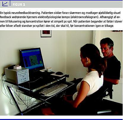 Neurofeedback er en træningsmetode, som anvender EEG-signaler til at påvirke hjernens tempomæssige orkestrering. Dette sker via visuel feedback fra en computerskærm (Figur 1 ). Metoden kaldes undertiden for EEG-biofeedback. I udlandet har neurofeedback gennem en lang årrække været anvendt i forhold til ADHD, epilepsi, OCD m.m. [4]. Sterman et al udviklede i 1960'erne en teknik, hvor katte blev trænet til viljemæssig kontrol af frekvensområdet 12-15 hertz (kaldet sansemotorisk rytme (SMR). Siden forskede Sterman for NASA i epilepsi under anvendelse af bl.a. katte. Ved et tilfælde fandt han ud af, at de katte, som ikke reagerede med epileptiske anfald på hydrazin (raketbrændstof), var dem, som han tidligere havde optrænet til viljemæssigt at forøge produktionen af frekvensområdet 12-15 hertz [5].