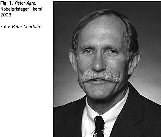 Peter Agre (Fig. 1 ), som er professor i intern medicin og biologisk kemi ved Johns Hopkins University Medical School i Baltimore, får den 10. december 2003 overrakt nobelprisen i kemi for sine epokegørende opdagelser af vandkanaler. Denne banebrydende opdagelse har givet molekylær indsigt i en af de mest fundamentale og livsbetingende biologiske processer, nemlig hvordan vand transporteres over cellemembraner og celler. Kroppen består af ca. totredjedele vand, og transport af vand over celler og regulering af kroppens vandbalance er helt afgørende for liv. Opdagelsen har f.eks. også givet indsigt i, hvordan nyrerne regulerer kroppens vandbalance gennem regulering af vandkanaler og har givet indsigt på molekylært niveau i den fejlregulering, der sker af kroppens vandbalance i forbindelse med flere livstruende tilstande som nyresygdomme, hjertesygdomme, leversygdomme, hjerneødem og andre sygdomme. Vandkanaler findes i stort set alle levende organismer, så opdagelsen har også givet en fundamental indsigt i mange andre områder. Der er påvist mere end to hundrede forskellige vandkanaler i planter, som spiller en afgørende rolle for vandtransport i planter og planterødder og dermed for planters vækst.