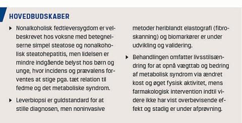 I denne artikel beskriver vi epidemiologi, patofysiologi, diagnostik, screening og behandling af pædiatrisk NAFLD og NASH.