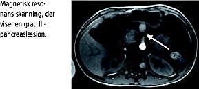 Ovenstående sygehistorie illustrerer de diagnostiske vanskeligheder, som pancreaslæsioner medfører. De abdominale symptomer er uspecifikke på grund af den retroperitoneale beliggenhed af pancreas [1]. Amylasen er forhøjet hos 49-90% af patienter med pancreaslæsion, når de ankommer til hospitalet [1, 3]. Ultralyd af abdomen er en relevant undersøgelse hos børn, der har været udsat for traumer. Undersøgelsen kan påvise evt. fri væske intraperitonealt, men er mindre sensitiv, når det drejer sig om at påvise læsioner af selve pancreas [3]. CT af abdomen indebærer en betydelig risiko for at under- eller overvurdere omfanget af pancreaslæsioner [3]. MRCP virker lovende til at gradere pancreaslæsioner, men erfaringen hermed er sparsom. Endoskopisk retrograd kolangiopankreatikografi (ERCP) har været anvendt med god effekt til at påvise eventuelle læsioner af ductus pancreaticus og for at undgå nonterapeutiske laparotomier. Der er dog beskrevet en risiko for post-ERCP-pankreatitis på 3-14% [3]. Terapeutisk ERCP med papillotomi over ductus pancreaticus og stenting af ductuslæsioner er anvendt hos børn med pancreaslæsioner, men erfaringen hermed er begrænset [1].