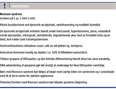 Noonans syndrom (NS) er en genetisk betinget, autosomal dominant arvelig sygdom med en anslået incidens på 1 pr. 1.000-2.500 [1]. NS er nedarvet i