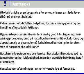 Nicheforholdende for de nosokomielle patogener er komplekse og i vid udstrækning ufuldstændigt forståede trods organismernes almindelighed og en stor interesse i reduktion af forekomsten af NI.