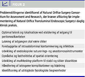 (NOSCAR) oprettet med henblik på at fremme udviklingen af NOTES-teknikken [1]. Et lignende samarbejde eksisterer i Europa under navnet EURO-NOTES. NOSCAR identificerede i 2005 flere områder, der krævede yderligere forskning, før klinisk implementering af NOTES kunne blive en realitet (Figur 2 ).