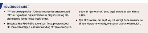 Molekylær billeddannelse med PET står i dag centralt i diagnostik og stadieinddeling. Med udvikling af en række nye PET-tracere er der åbnet for en langt bredere anvendelse, der vil kunne understøtte skræddersyet terapi og dermed virkeliggøre, at man kan praktisere præcisionsmedicin inden for kræftsygdomme.