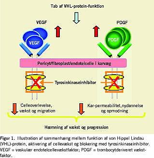 Clearcellekarcinomet, som er langt den hyppigste histologiske type, har i de fleste tilfælde mutationer i von Hippel Lindau (VHL)-genet på kromosom 3, hvilket medfører, at genproduktet ikke dannes eller fungerer. Dette medfører en uhensigtsmæssig stimulation af cellens systemer for proliferation og dannelse af nye blodkar (Figur 1 ). Stoffer, som blokerer denne type vækstaktivering (f.eks. via c-KIT, RAF eller vaskulær endotelial vækstfaktor (VEGF)) er derfor potentielle behandlingsmuligheder ved clearcellekarcinomer.