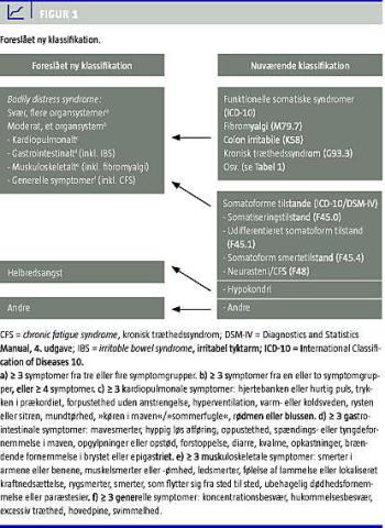 »Somatiske« funktionelle syndromer og »psykiatriske« somatoforme tilstande kan således ikke adskilles i praksis, og denne klassifikatoriske dikotomi har været stærkt kritiseret både ud fra en klinisk og en videnskabelig betragtning [4, 8, 15]. Der er dog samtidig stadig fortalere for parallelle psykiatriske og medicinske diagnoser [16].