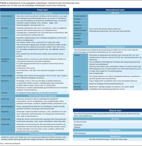 Det daglige kliniske arbejde med diagnostik, behandling og prognosticering af epilepsi bygger på en grundig klassifikation af de epileptiske anfald og af de forskellige årsager til epilepsi. Klassifikation danner også basis for kommunikation mellem klinikere, i undervisning og forskning, ikke mindst epidemiologisk, og har dermed betydning for interventioner på populationsniveau. Få emner får sindene i kog blandt epileptologer som diskussioner om netop klassifikation. Ser man bort fra den klassiske deling i grand mal og petit mal, der fortsat lever i bedste velgående, skete det første forsøg på systematisk klassifikation af de epileptiske anfald i nyere tid i 1964 [1]. Anfaldsklassifikationen fra 1981 [2] og epilepsiklassifikationen fra 1989 [3] blev benyttet i flere årtier. Ændringer i vores opfattelse af den patofysiologiske baggrund for epilepsi og mangler i de tidligere klassifikationer har nødvendiggjort en revision. Den internationale liga imod epilepsi (ILAE) har taget den seneste anfaldsklassifikation [4] og epilepsiklassifikation [5] i brug i 2017 efter flere års arbejde. Forinden var selve definitionen af epilepsi blevet revideret i 2014 [6, 7].