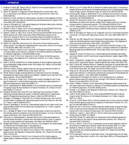 <li>Brock I, Ruhwald M, Lundgren B et al. Latent tuberculosis in HIV positive, diagnosed by the M. tuberculosis specific interferon-gamma test. Respir Res 2006;7:56.</li>