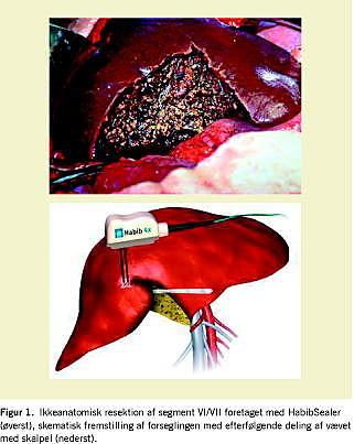 Summary New liver surgery devices - few complications and more advantages? Ugeskr Læger 2008;170(16):1342-1345 Introduction: Most blood loss in hepatic resections occurs during transection of the liver. To reduce this blood loss and avoid blood transfusions, initial experience with radiofrequency based dissecting devices are presented. Curative liver surgery requires combinations of classical resections and tumorablations. Materials and methods: Retrospective analysis of 22 patients who underwent various hepatic resections for colorectal liver metastases. Two commercially available devices were used for transection, either the TissueLink or the Habib Sealer. Results: Mortality was zero and morbidity low. No blood transfusions were needed following the use of the Habib Sealer, whereas four patients received blood after TissueLink. 27% of the patients needed a combination of resection and tumorablation. Conclusion: Liver surgery and transection of the liver can be performed safely with radiofrequency based dissecting devices. Theoretical advantage could be more candidates to curative surgery.