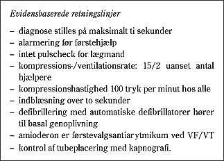 - Nielsen JR, Sandøe E. Retningslinier for genoplivning af voksne patienter. Ugeskr Læger 1995; 157: 5223-8.