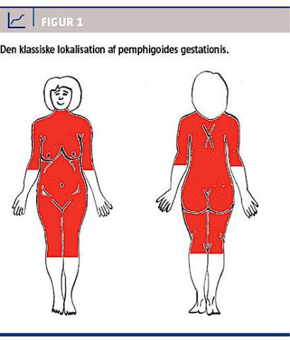 PG er en meget sjælden autoimmun, vesikulobulløs lidelse med karakteristisk periumbilikal involvering [5, 6, 9]. Incidensen er 1:40.000-60.000 med debut i hhv. første trimester (18%), andet trimester (34%), tredje trimester (34%) eller post partum (14%) [6].
