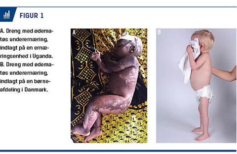 Vi beskriver to børn med ødematøs underernæring. Det ene barn var indlagt på en ernæringsenhed i Uganda og det andet på en børneafdeling i Danmark. Ubehandlet er tilstanden livstruende og kræver særlig ernæringsterapi, så også refeeding-syndrom undgås.