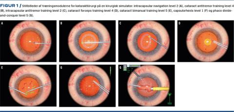 Simulationsbaseret kataraktkirurgi bør især fremhæves som et område, hvor simulationskirurgien er ved at få fodfæste inden for den kliniske oplæring af kommende øjenkirurger. Dette er kommet til udtryk ved, at et træningsprogram er blevet udarbejdet og valideret som en del af et ph.d.-projekt [5], hvor det bl.a. blev påvist, at simulationstræning i kataraktkirurgi fremmer kirurgisk performance i udførelse af operationer på patienter [8] (Figur 1).