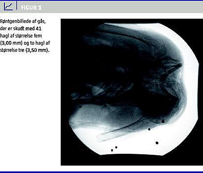 Go for the evidence som Gil Grissom i Crime Scene Investigation (CSI) siger. Gennemlysning af gåsen viste, at den var ramt af adskillige hagl. I Skotland anvendes blyhagl, og disse ses deformerede med god energiafsætning (Figur 1 ). J anvendte haglstørrelse fem (3,00 mm) og G anvendte haglstørrelse tre (3,50 mm). Det ses, at gåsen er ramt af adskillige hagl af størrelse nr. 5 og mindst et hagl af størrelse nr. 3, det sidste med gennemskydning af thorax. Konklusionen er således, at begge jægere ramte gåsen dødeligt, men at J's skud som følge af den voldsomme energiafsætning var det umiddelbart dræbende. J fik sin julegås, og det skotske gods forærede G en anden gås som trøst!