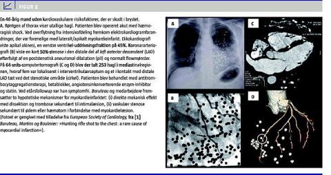 Jagt er farlig for byttedyrene, men af og til kan mennesker også komme til skade, hvis skytterne ikke er forsigtige ved skudafgivelsen. Et sådant eksempel er for nyligt publiceret i European Heart Journal (»Hunting rifle shot to the chest: A rare cause of myocardial infarction«). De nærmere omstændigheder er ikke beskrevet, men Figur 2 viser en røntgenoptagelse af throrax hos en person, der er blevet ramt af et skud. Vi har nogle korrigerende kommentarer.