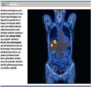Galdegangscancer omfatter adenokarcinomer opstået i intrahepatisk galdegangsepitel, i leverhilus (Klatskintumorer) eller i de ekstrahepatiske galdegange, herunder også galdeblærecancer og periampullære karcinomer [1-3]. I 2010 blev der i Danmark registreret 225 tilfælde af primær cancer i galdeveje eller galdeblære [4]. Tallet skal tolkes med forbehold, da der kodemæssigt kan være et vist overlap med hepatocellulære karcinomer intrahepatisk og pancreas- eller duodenalcancer periampullært. Dette skyldes til dels, at man histologisk ikke kan skelne mellem ventrikel-, pancreas- og galdegangscancer. Endvidere registreres en del tilfælde som ukendt primærtumor, på trods af at de formentlig reelt opfylder kriterierne for kolangiokarcinom.
