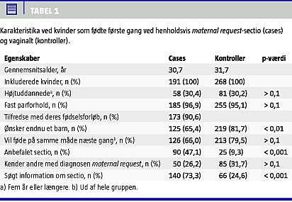 Materiale og metoder: Studiet er en spørgeskemabaseret case-kontrol-undersøgelse. Casegruppen bestod af P0, som fødte ved planlagt sectio i 2005 og 2006 som følge af maternal request . Kontrolgruppen bestod af P0, som havde født vaginalt, og som var matchet 1:1 til casegruppen på alder, fødeamt, fødselsår og fødselsvægt.